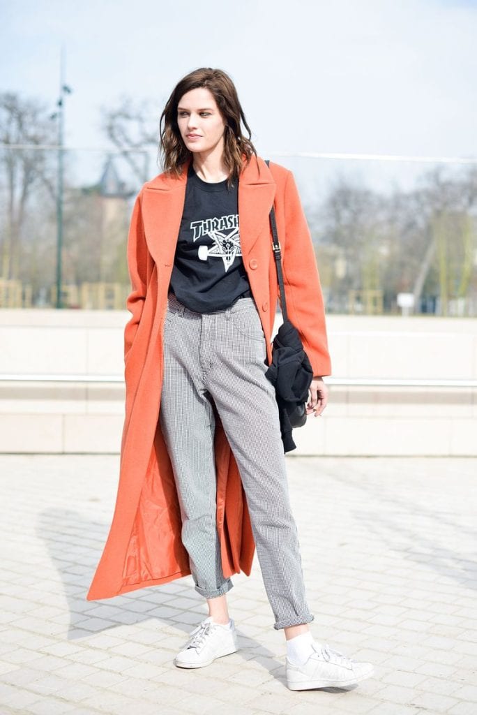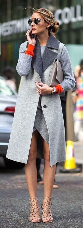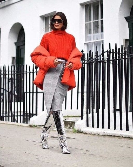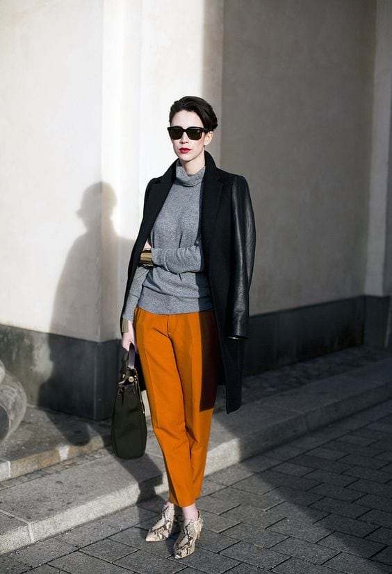 Naranja + gris. ¡La mejor forma de levantar un neutro! Es fácil verse apagada y demasiado básica cuando usamos neutros como el gris, pero basta un poquito de luz para despertar el outfit. El naranja es energizante, puedes incorporarlo en tops, chaquetas o accesorios.