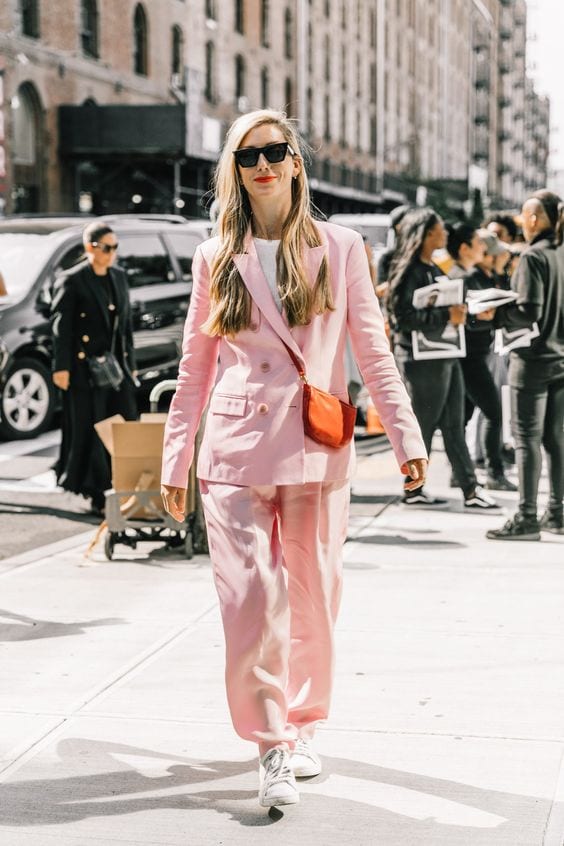 Rosado + blanco. Femenino, elegante, versátil… no hay cómo equivocarse si eliges esta combinación. Le queda bien a todo el mundo y puedes jugar con las tonalidades de rosa, uno más pálido o más intenso para que destaque mejor tu complexión. Se puede llevar en invierno y verano, tiene aires dulces, pero a la vez es un combo chic para lucirse. Como es una mezcla sutil, te invito a jugar con pantalones rosa y una camiseta blanca, o un blazer en el tono para la próxima temporada.