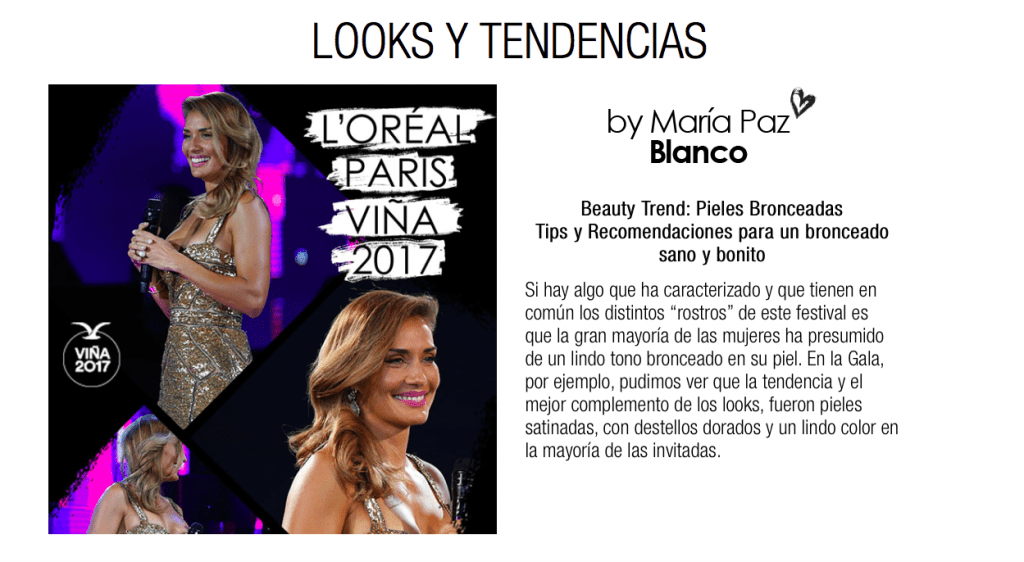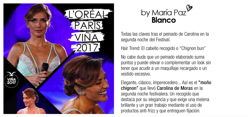 Para ello han creado un entretenido blog llamado L’ORÉAL PARIS VIÑA 2017 donde de manera exclusiva revelo todos los “misterios” y detalles únicos! Qué labial utilizó, cuál es el secreto para esa piel radiante o cómo logró esas pestañas únicas… En fin todo está aquí www.lorealparisfestival.cl