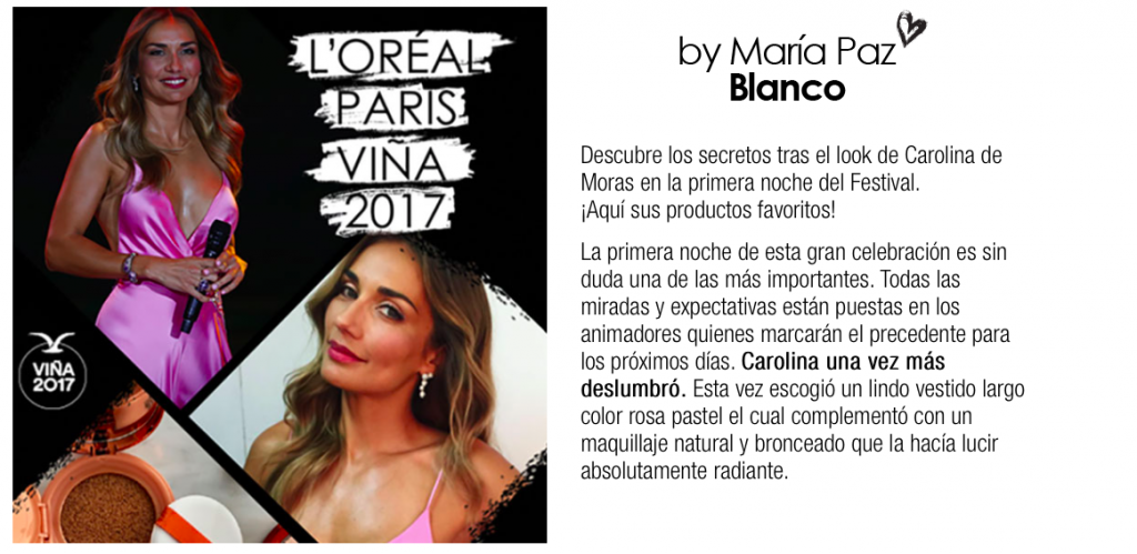 Este año L’Oréal Paris me hizo una entretenida invitación… Analizar y revelar los detalles detrás del look de Carolina de Moras para esta nueva jornada del Festival de Viña del Mar. Y la verdad es que es imposible resistirse a algo tan entretenido como dar a conocer todas las claves de su look, los producto que utilizó y algunas técnicas y tips más secretos que a todas nos encantan!