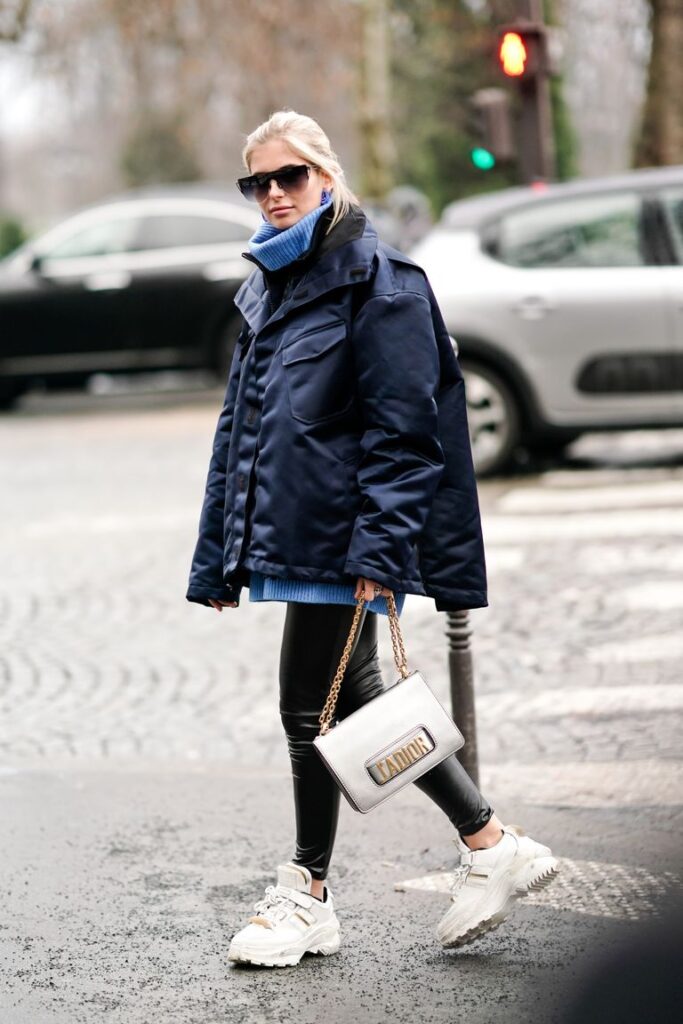 ¿Con qué prendas de abrigo llevar tus looks con leggins negros? ¡Las opciones son múltiples! Pero algunos de nuestros favoritos 2021 indiscutidos son el boxy blazer, la sobrecamisa, los abrigos ‘teddy’ (o peluche) y por supuesto, la eterna biker leather jacket.