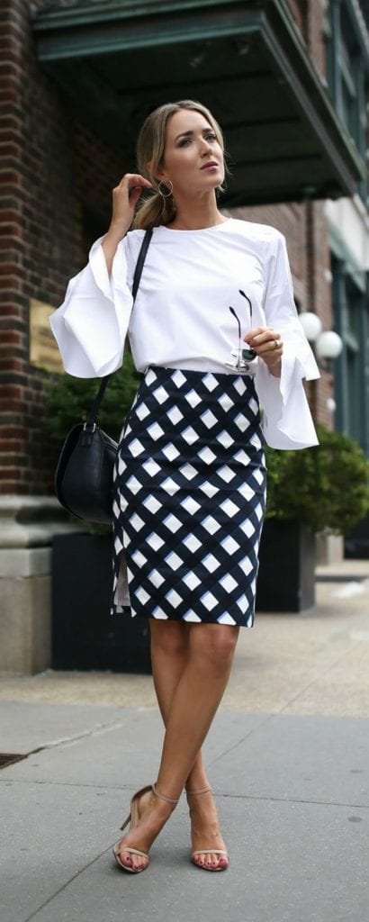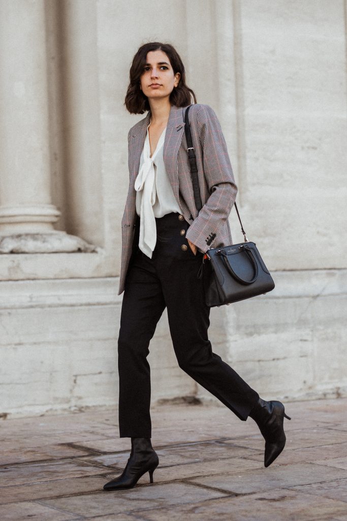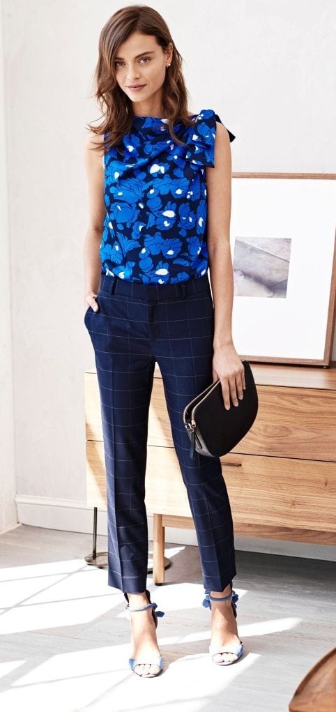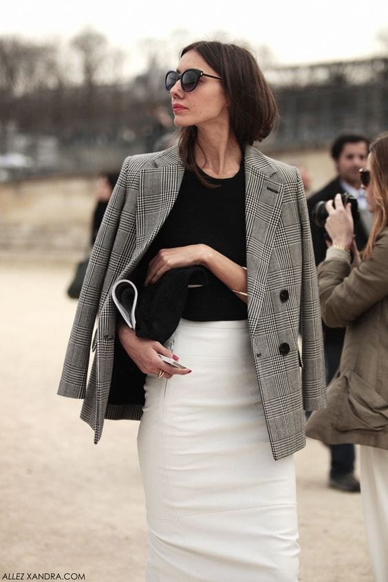 El blazer es el mejor aliado. Entrega formalidad y estructura, estiliza la figura y contribuye a ‘levantar’ un look más relajado. Según el tipo de trabajo que tengas puedes combinarlo con un pantalón de tela o una falda midi para ocasiones más formales, con jeans o vestidos cuando el código de vestuario permite estilos más casuales. Para salirse del típico estilo de escritorio te invito a probar combinaciones de estampados y texturas. Esta temporada los blazers clave son: cuadrillé tipo, blanco y con rayas.