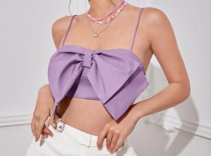 Pero los maxi lazos también se toman las prendas más sencillas como crop tops, faldas, blusas, vestidos de uso diario y accesorios para el pelo. El secreto está en combinar una prenda de gran volumen, dramática y que se lleve toda la atención, con otra de líneas simples, clásica. Por ejemplo los grandes crop tops que incorporan un lazo en la parte delantera quedan increíbles con pantalones lisos o palazzos e incluso con jeans para un look más relajado.