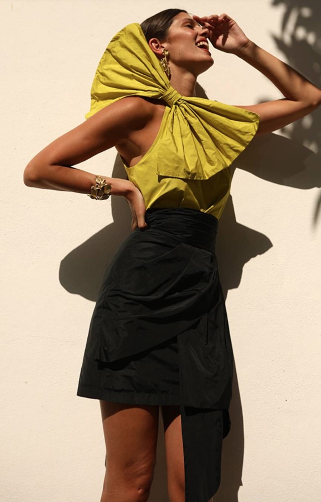 Pero los maxi lazos también se toman las prendas más sencillas como crop tops, faldas, blusas, vestidos de uso diario y accesorios para el pelo. El secreto está en combinar una prenda de gran volumen, dramática y que se lleve toda la atención, con otra de líneas simples, clásica. Por ejemplo los grandes crop tops que incorporan un lazo en la parte delantera quedan increíbles con pantalones lisos o palazzos e incluso con jeans para un look más relajado.