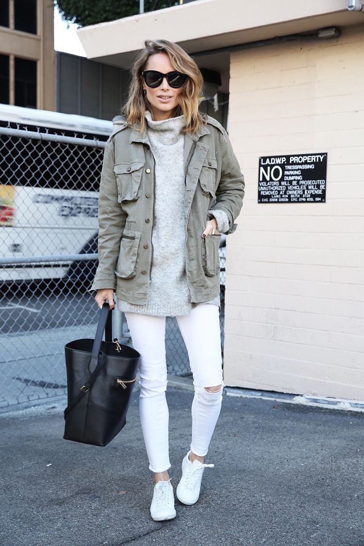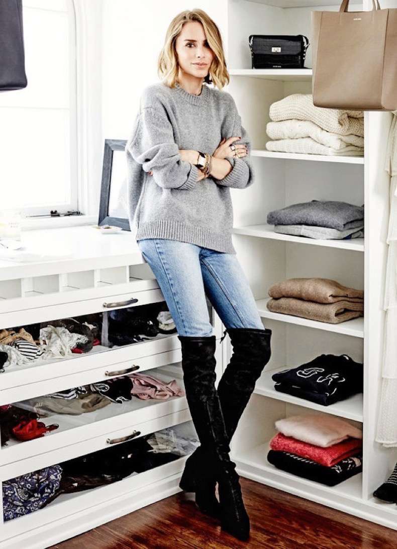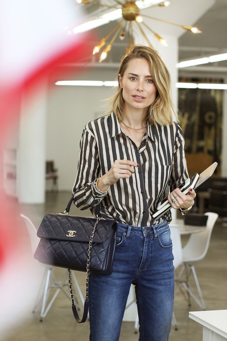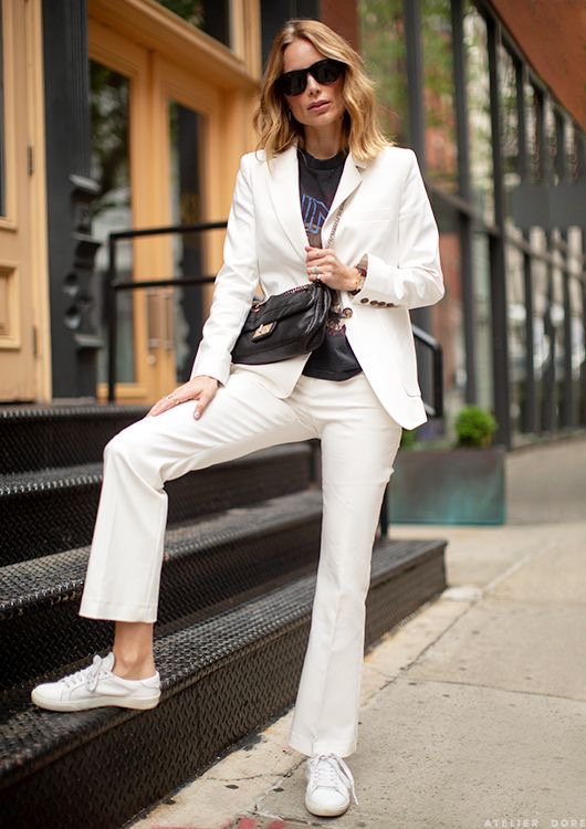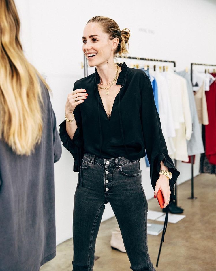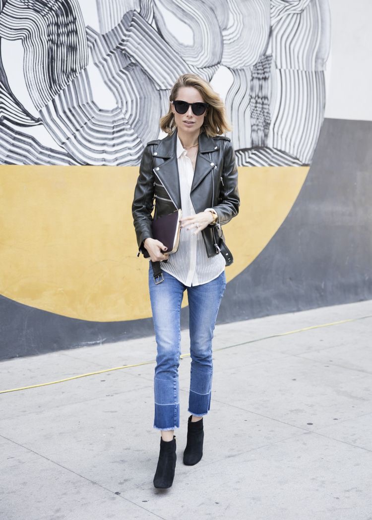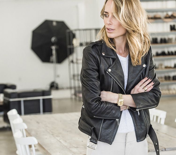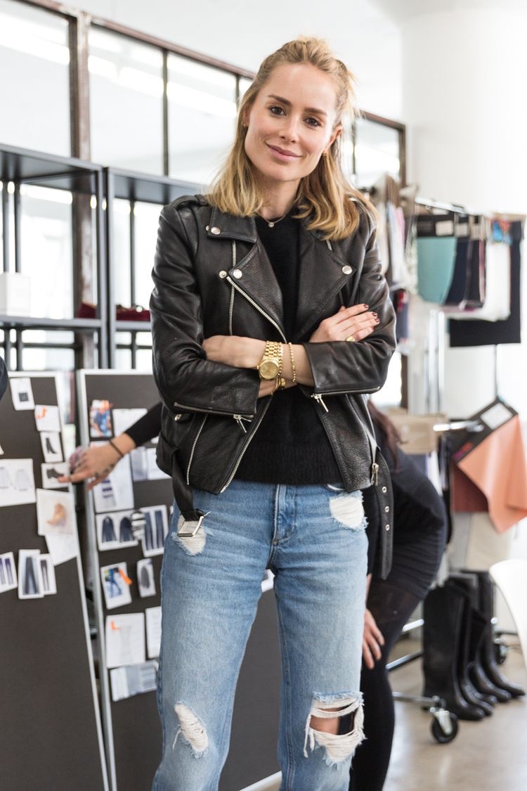 La diseñadora ama los pantalones pitillo, las poleras de algodón, camisas blancas básicas, las chaquetas de cuero y las booties y sandalias planas. Y todo esto, si es en colores neutros, mejor.