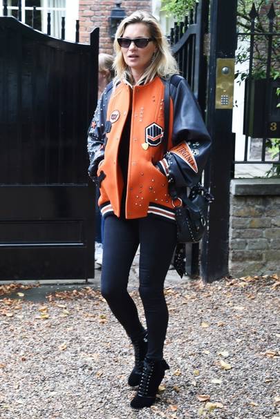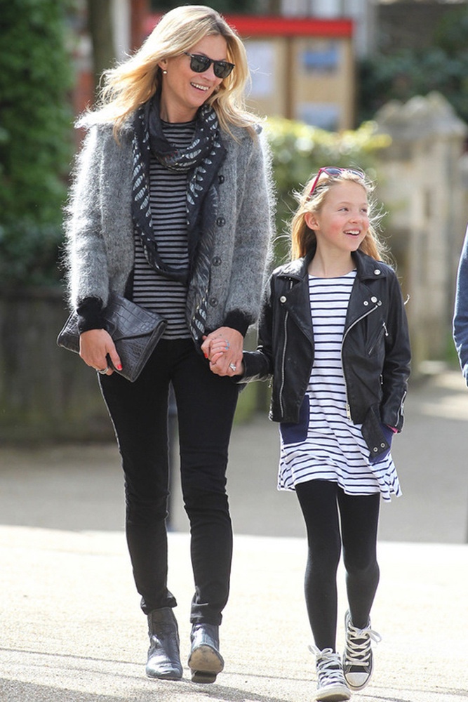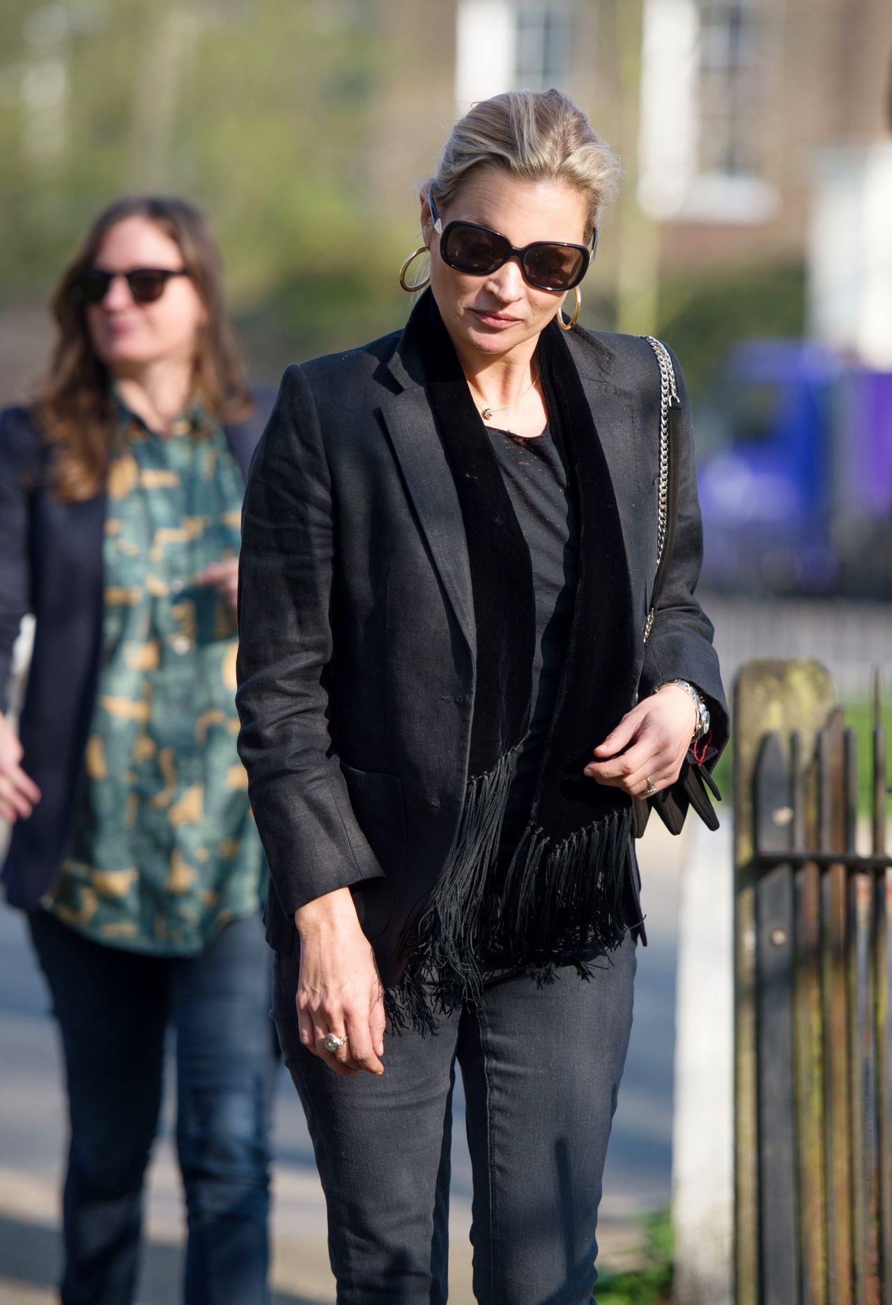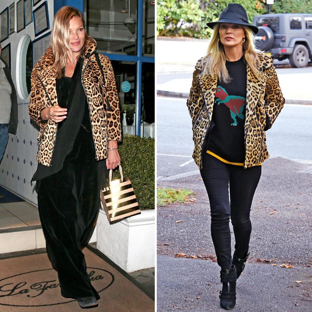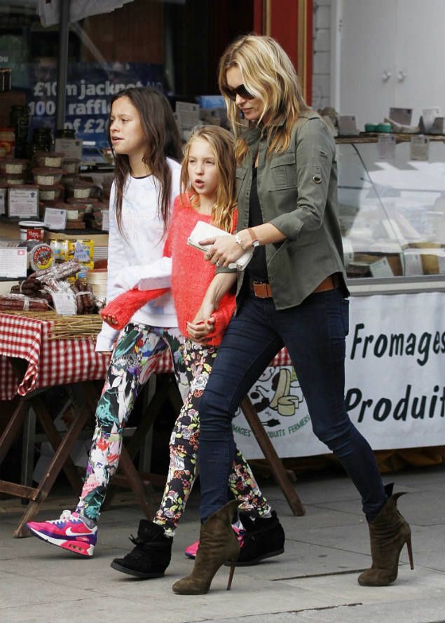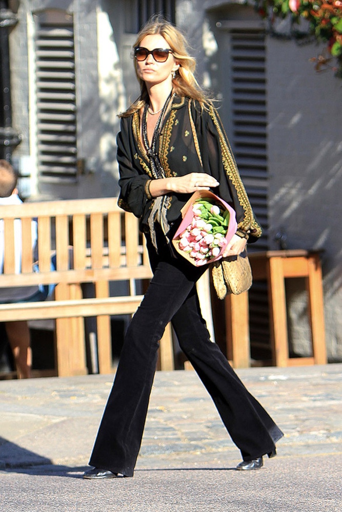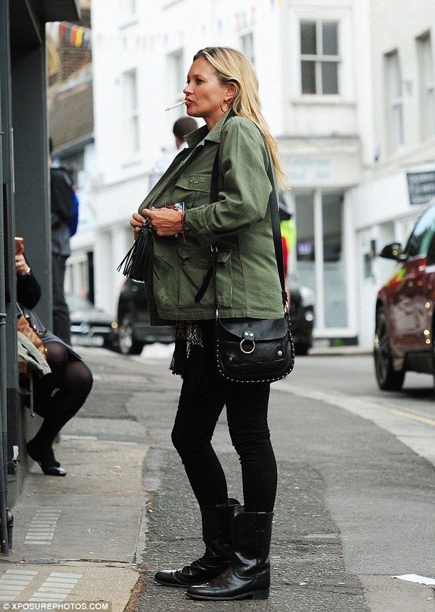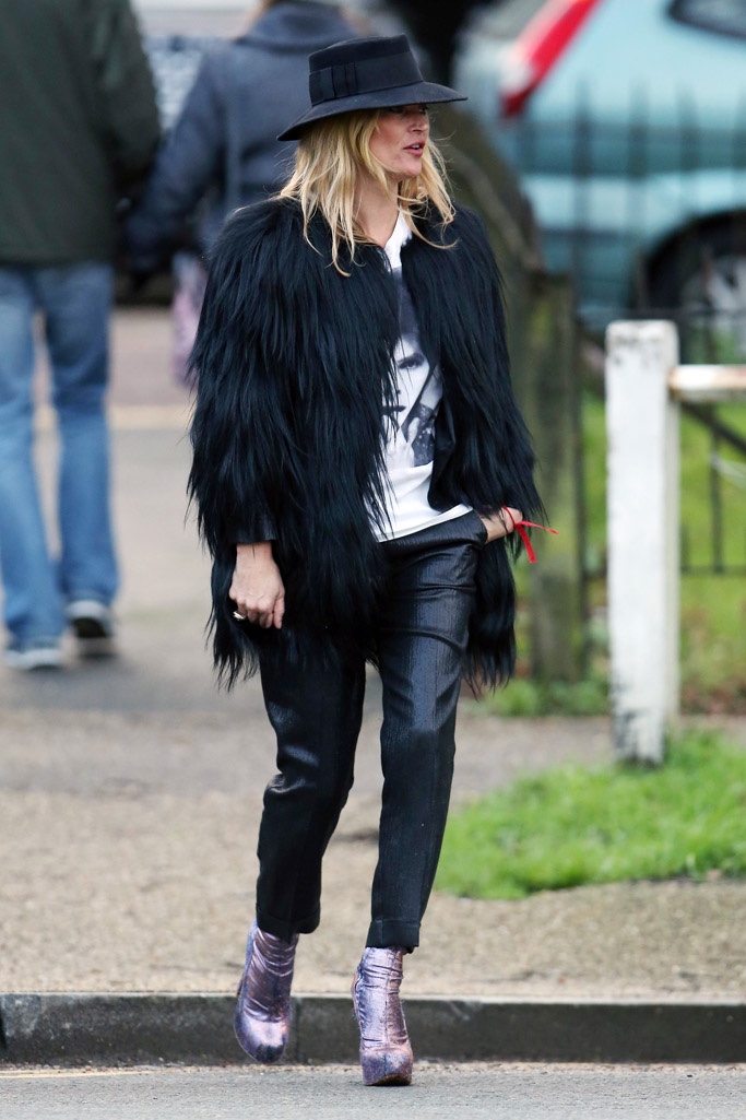 Si se fijan la paleta de Kate Moss es bastante neutra: Gris, negro, azul marino, beige, blanco y mucho, pero mucho denim, cuero y pieles. Nunca la verás con colores fuertes para el día a día.