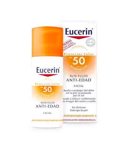 En otros estudios de eficacia in vivo, mujeres entre las edades de 35-65 años aplicaron Eucerin Sun Fluid Anti-Age dos veces al día en una prueba a rostro dividido. Tras cuatro semanas de uso regular, ellas reportaron que las arrugas y líneas finas en sus rostros y líneas del cuello se habían reducido visiblemente. (Fuente, Eucerin.cl)