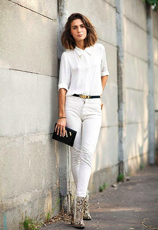 ¡Tantos mitos giran en torno a este pantalón! Desde que es sólo para las mujeres de piernas delgadas o exclusivo para usar en verano, en fin lo importante es siempre fijarse en el corte y la materialidad. Sí, porque efectivamente el “jeans pitillo en blanco” puede tener más restricciones, pero no son el único modelo que podemos encontrar. Sin duda alguna unos de corte más recto, boyfriend, straight fit o “bootcut” son apropiados para la gran mayoría de nosotras.