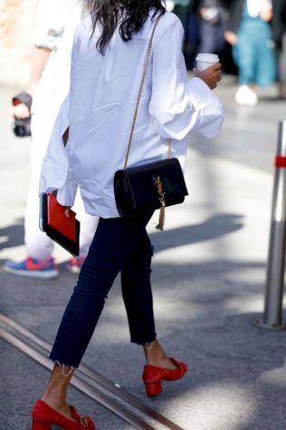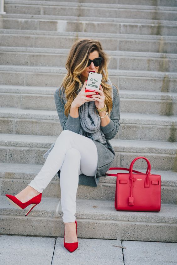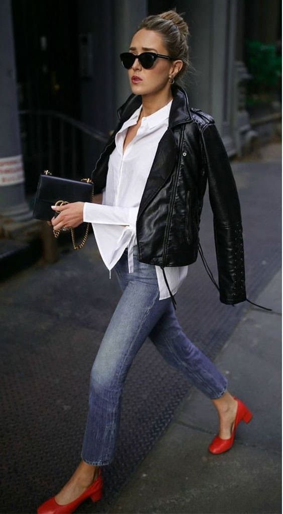 Definitivamente entregan un “toque” especial y muy chic a cualquier outfit. Una camisa blanca y unos jeans lucen increíbles junto a unos lindos zapatos rojos.