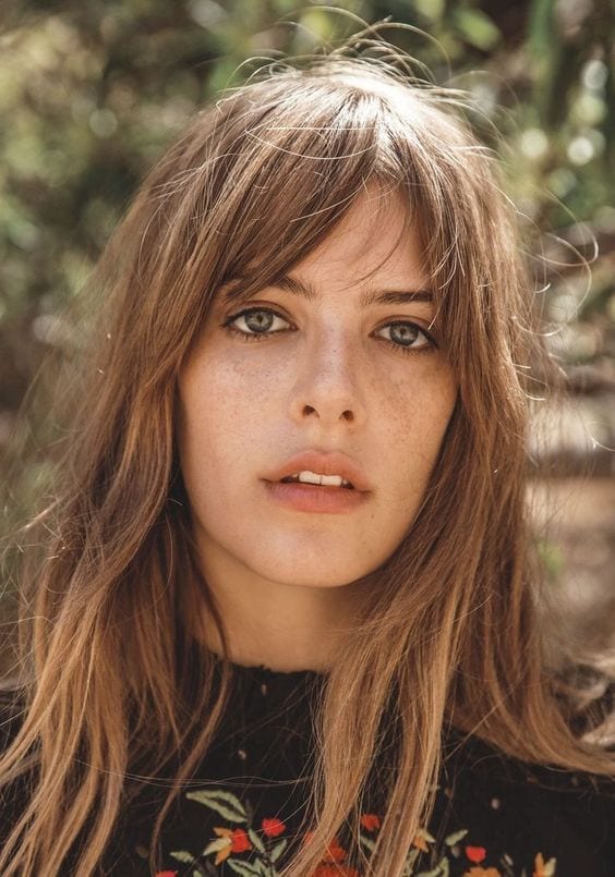 Ahora si tu cara es alargada, aquí buscamos el efecto contrario de lo que ocurría con las caras redondas: Acortar, por tanto el flequillo corto, recto y tupido, es sin duda el más indicado y el más favorecedor.