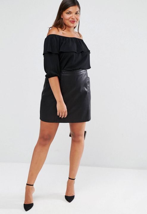 Para un look cargado de personalidad y sensualidad, un outfit negro de pies a cabeza es una opción ideal. Puedes darle un toque diferente con accesorios como un collar o una cartera cruzada, o unos labios rojos intensos que irán perfecto con tu look con la mini de cuero como protagonista.