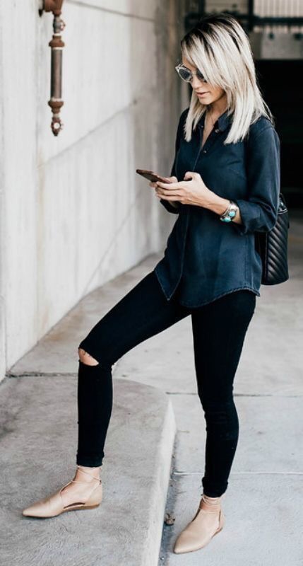 Jamás uses zapatos o pantalones que creen un contrate entre ellos. Opta siempre por llevar los mismos tonos y de esta forma crear la ilusión de unas piernas más largas. Este tip no falla!