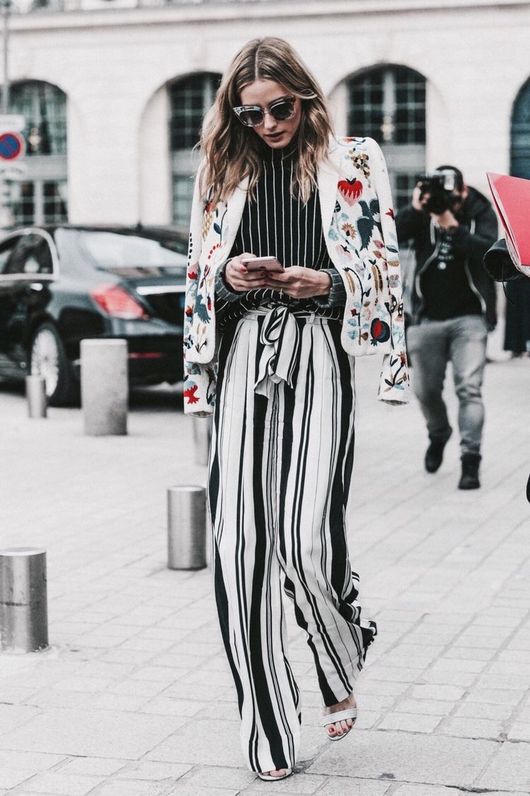 Al igual que los pantalones bootcut, los palazzos hacen el mismo efecto e incluso aún mejor ya que al ser anchos desde arriba hacia abajo y ultra largos podemos usarlos con tacos grandes y no marcan nuestras piernas. Recuerda que este pantalón va siempre a la cintura y se usa generalmente con tacos para dar más amplitud a las piernas. Se ven muy sofisticados y femeninos.