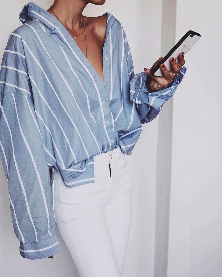 2. Blusa Celeste: Esta blusa de algodón es ideal para los días cálidos. Se puede combinar con distintos jeans, desde unos pitillos blancos, hasta otros color mezclilla.