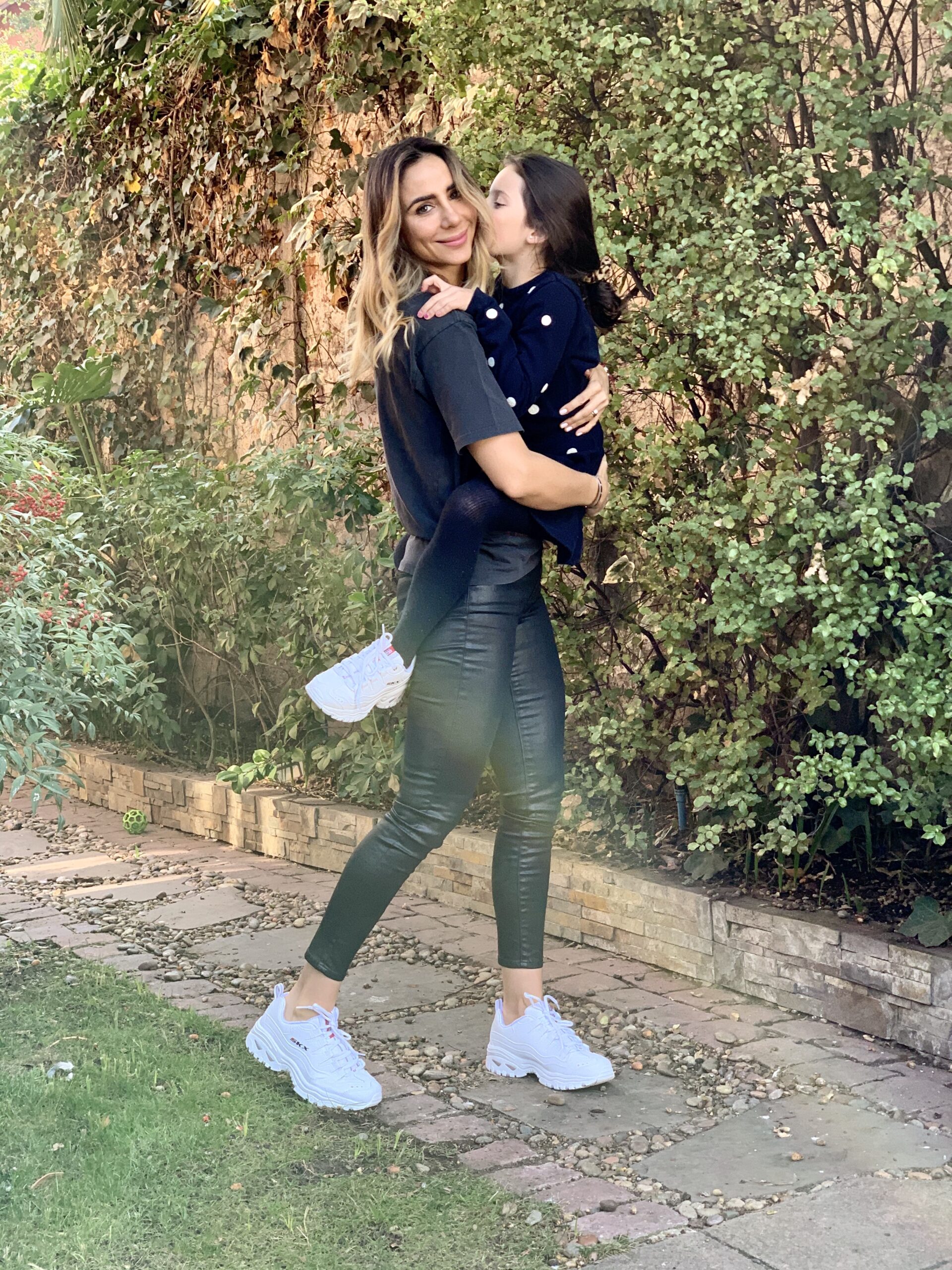 Eso sí, vestirse similares exige que encuentres looks súper cómodos y que se vean bien a toda edad, para que ninguna de las dos parezca disfrazada. Para conseguirlo, mi calzado preferido son las versátiles zapatillas de Skechers, ¡que tanto la Domi como yo amamos!