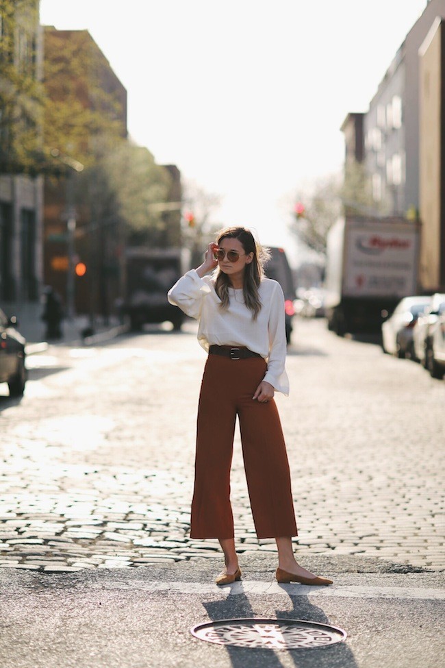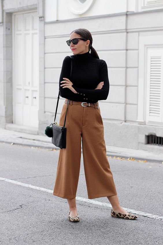 Como el culotte es una prenda de líneas amplias, lo mejor es combinarla con una parte de arriba más ajustada y que vaya siempre por dentro del pantalón. Así conseguirás un favorecedor equilibrio entre el tren superior e inferior de tu silueta.