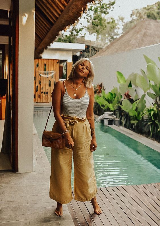 Como el culotte es una prenda que ya derrocha bastante personalidad, lo mejor es combinarla con piezas más básicas, que acompañen sin ‘competir’ en protagonismo. Puede ser un camiseta lisa, a rayas o una blusa, ideal para los días primaverales.