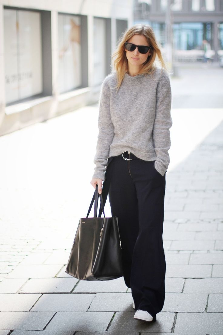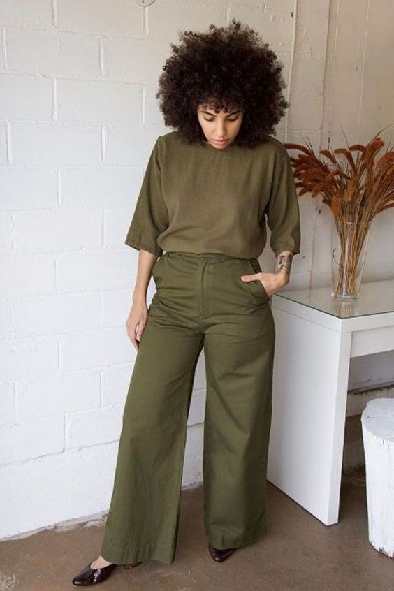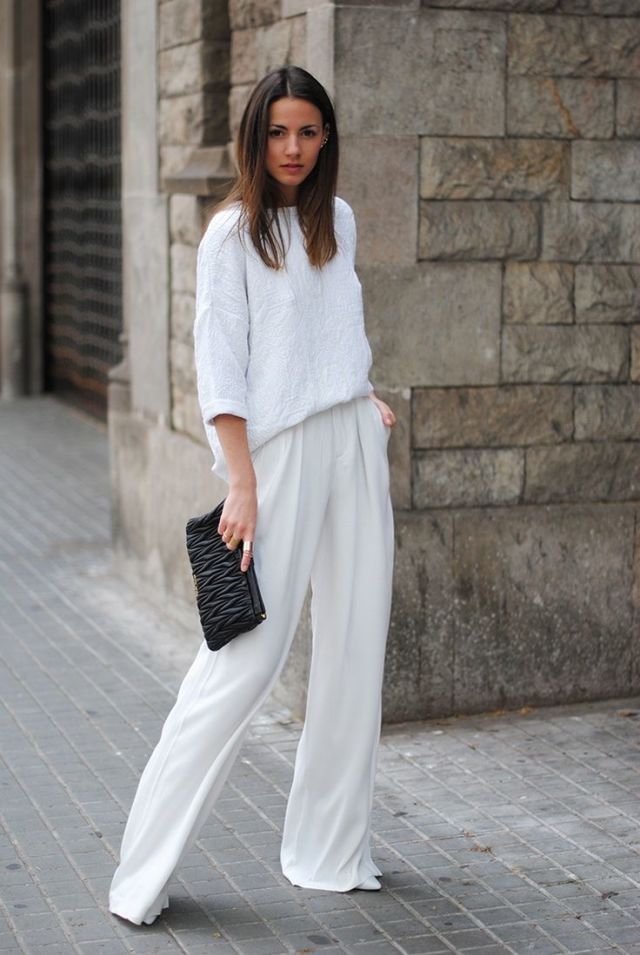 Si quieres potenciar el efecto estilizador de este pantalón, el look monocromático de pies a cabeza es una carta segura.