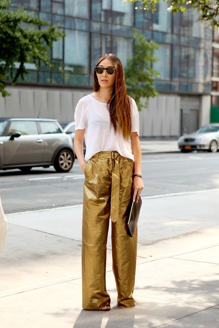 Los pantalones palazzo de texturas como metalizados o efecto cuero son una apuesta segura para conseguir un look de ALTO IMPACTO.