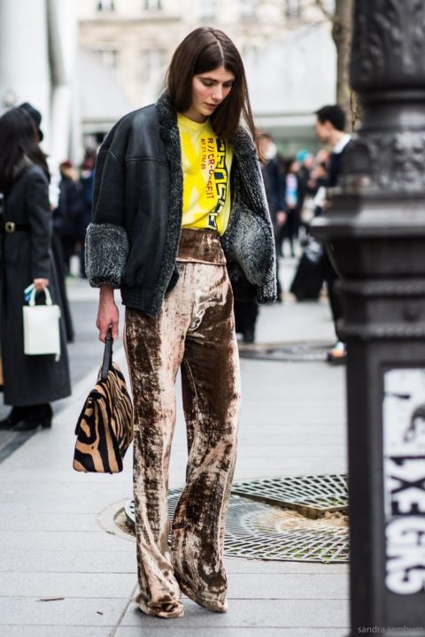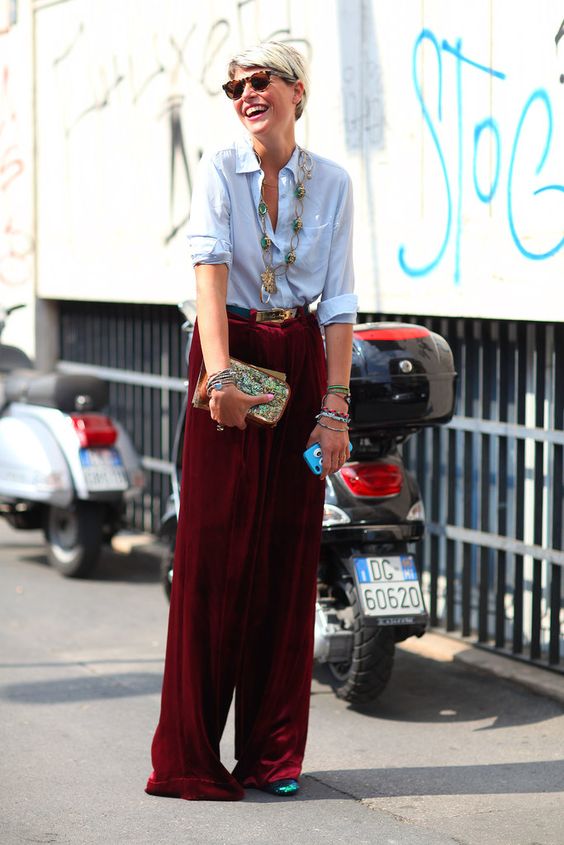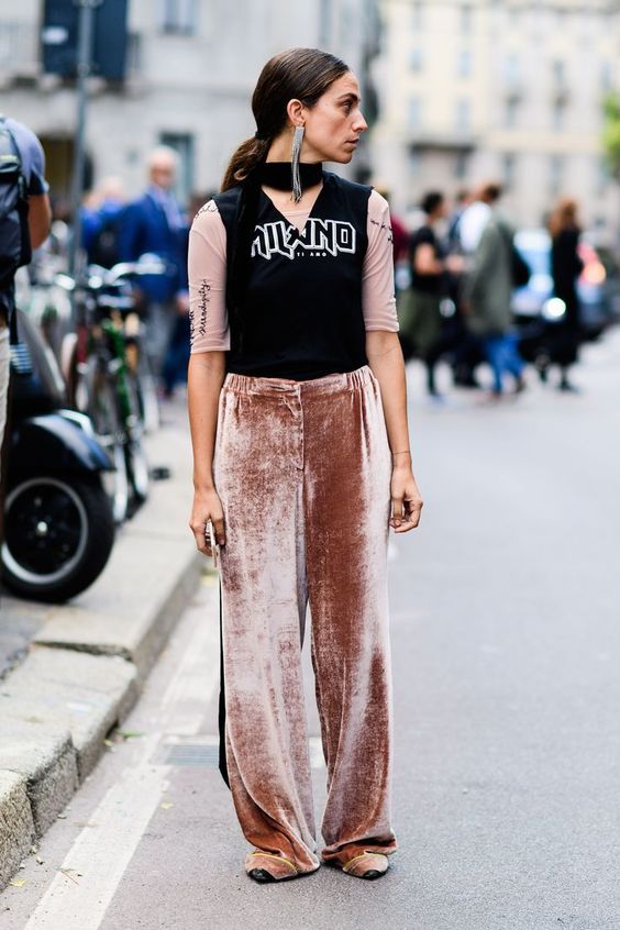Los pantalones palazzo de terciopelo es una de las micro-tendencias que causará furor este 2021.
