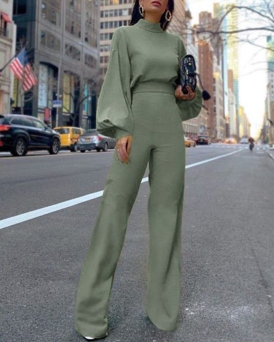 Para una ocasión más formal, el traje de chaqueta y pantalón palazzo es una apuesta inequívoca: comodidad, estilo y elegancia al instante.