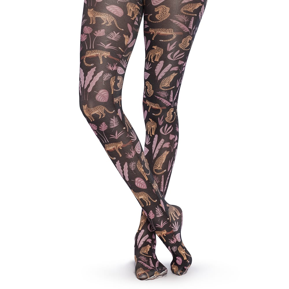 Esta temporada destacan nuevos colores llamativos en las pantys opacas, una variedad de pantys caladas o tejido de red con diferentes diseños de fabricación italiana y debutan por primera vez las pantys transfer, las cuales llevan impreso un diseño único y exclusivo de la marca, tal como animal print, militar, escocés y monstera.