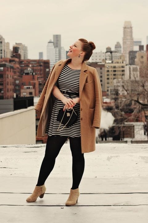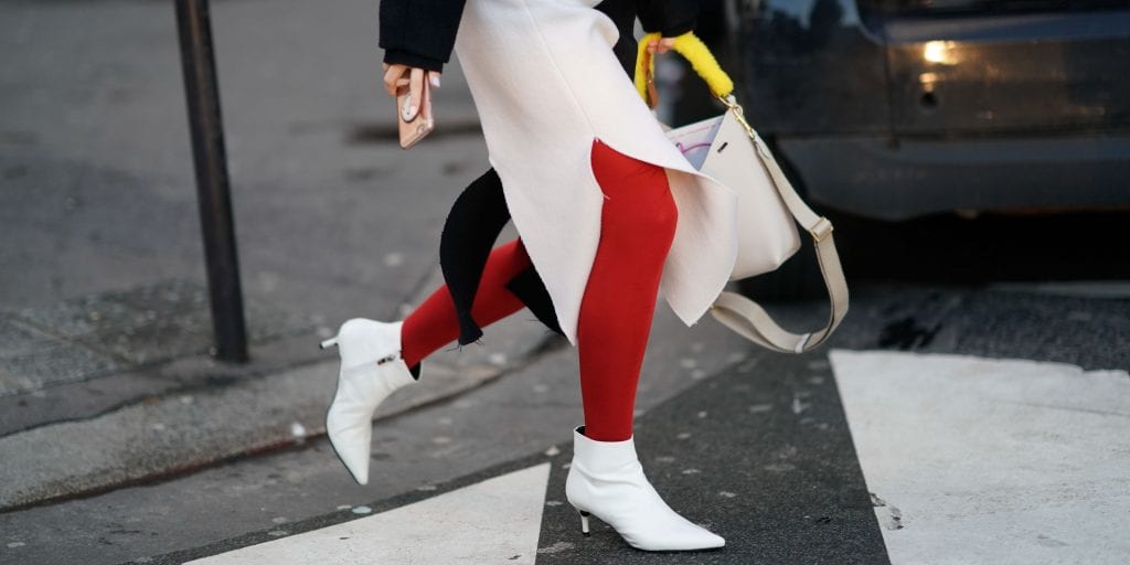 Aquí la idea es que busques siempre darle continuidad a tu look con los zapatos. Es decir que tus botines o tacos sean de un color similar al de tus medias, de esta forma lucirán mucho más estilizadas.
