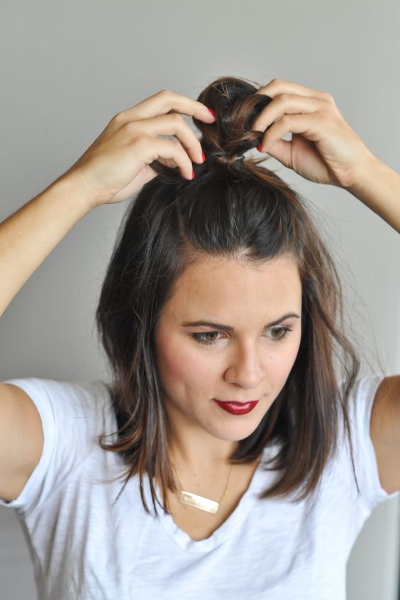 Tip de estilo: si quieres ‘sumar’ algunos centímetros de altura a tu silueta, finaliza el medio-moño con un tomate que sobrepase la corona de tu cabeza. ¡El efecto visual de verticalidad será inmediato!