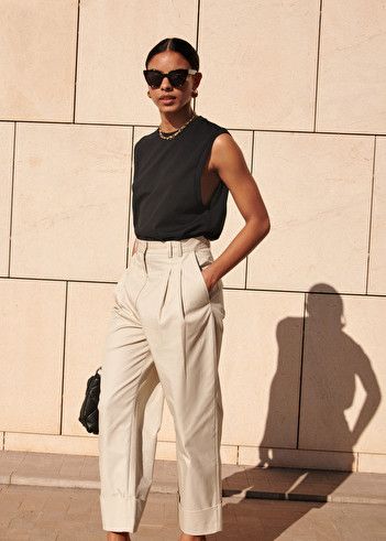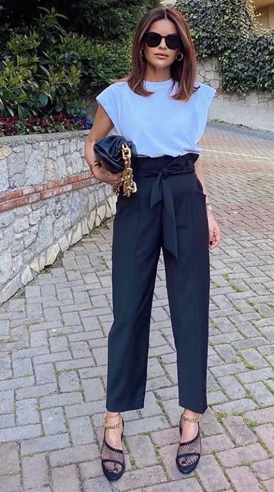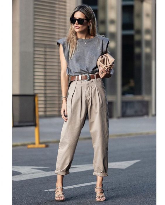 Los pantalones paper-bag, de cintura bien marcada, cadera aglobada y los tobillos más ajustados, son un complemento ideal ya que logran generar un equilibrio en la silueta. Además, para hacer toda la diferencia, arremanga ‘descuidadamente’ la basta. ¿La combinación favorita? Top blanco + pantalones beige.