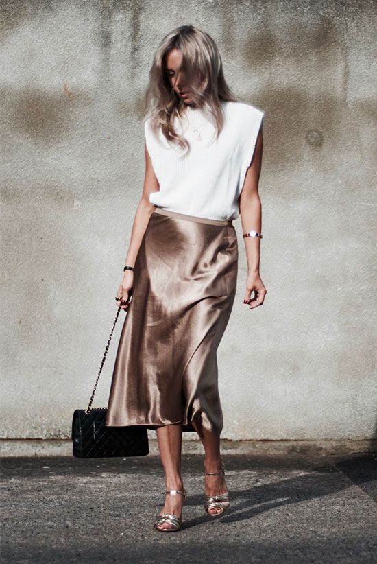 Para elevar el look y darle una personalidad más glam, por ejemplo para una fiesta o un matrimonio, apuesta por texturas como los metalizados, efecto cuero o el satín.