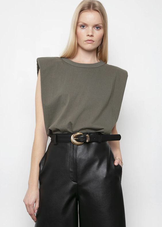 Como las clásicas poleras lisas que todas tenemos en nuestro clóset, pero sin mangas y con hombreras bien pronunciadas. El nuevo básico de primavera confirma el regreso indiscutido del estilismo de los 80 y el street-style ya sucumbió ante este come-back.