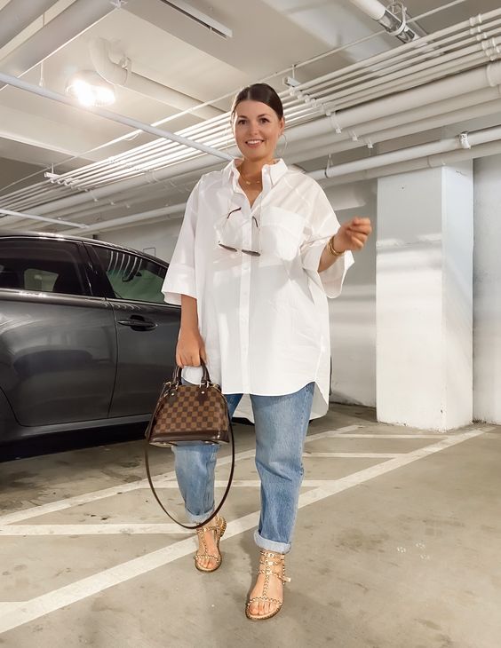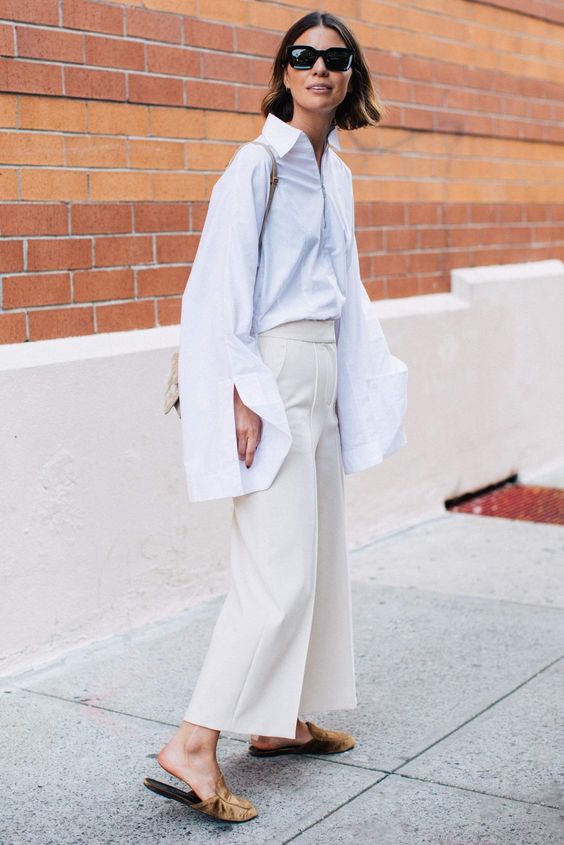 La blusa blanca oversize, otra pieza que no puede faltar en tus looks de oficina. Puedes llevarla extendida del todo, como una camisero sobre jeans o pantalones rectos, o recogerla por dentro de la cintura para potenciar las curvas de tu silueta.
