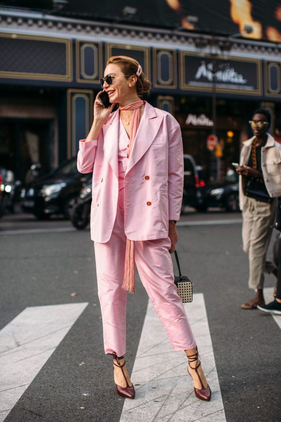 El clásico traje de dos piezas, ícono del Power dressing, asume líneas mucho más relajadas esta primavera, y pierde su rigidez combinando diferentes cortes y colores. Las telas se vuelve más livianas y las prendas más frescas, combinando blazers con pantalones culotte o pescadores. ¿Los tonos que más veremos? Pasteles y claro, el verde, un color que promete vivir su máximo esplendor esta primavera-verano.