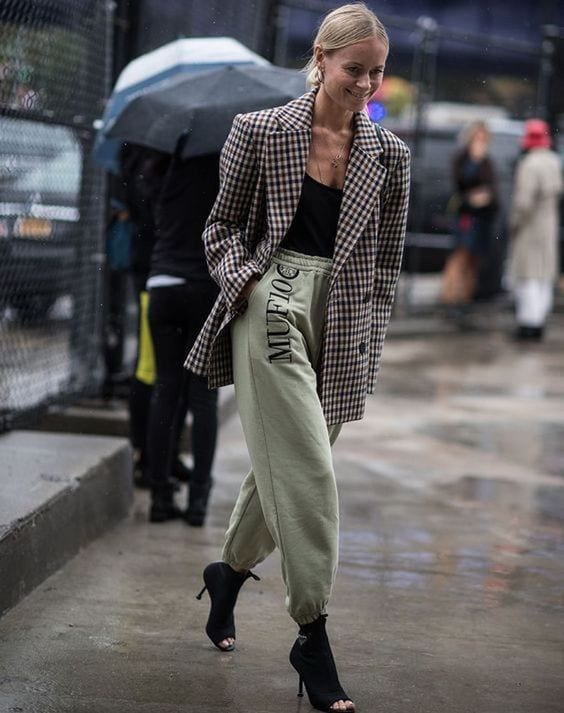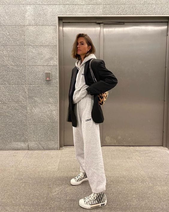 El total look de buzo, es decir la parte de arriba y de abajo del mismo tono y material, es uno de los hits en los looks de cuarentena. Para elevar tu atuendo solo necesitas sumar un blazer, eso sí, ideal si es en otro color para elevar la tenida.
