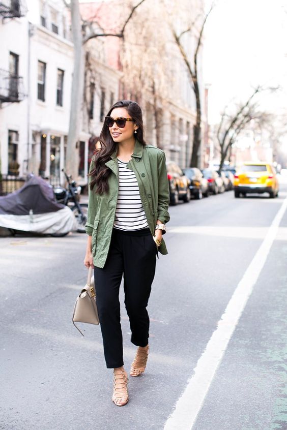 Nos encanta el aire campestre y natural que aporta el verde militar a los looks de primavera.