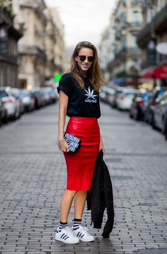 Otra cosa importante es que no necesariamente tiene que ser ajustada, una pencil skirt puede ser más ‘rígida’ y ajustarte igual de bien al cuerpo, no tiene que ser elasticada para que funcione.
