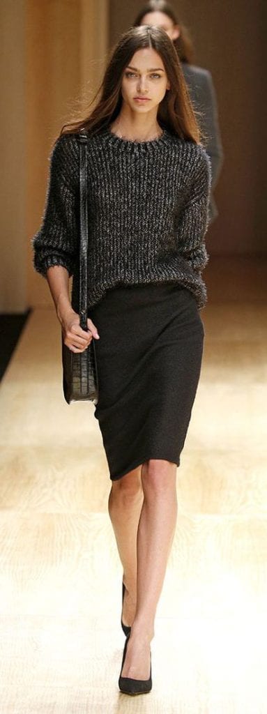 Estos cuerpos curvilíneos se sacan partido con una falda lápiz (un poco más larga que la falda tubo, que también luce las curvas), ya que marca bien la cintura y acentúa las curvas, suavizando los muslos. Es la típica falda Kardashian y la recomendación es buscar que la tela sea contenedora, no muy delgada para que no se vea vulgar y por supuesto prestar atención al largo, ya que mientras más corta sea, dará la impresión de que tus muslos o cadera son más gruesas.