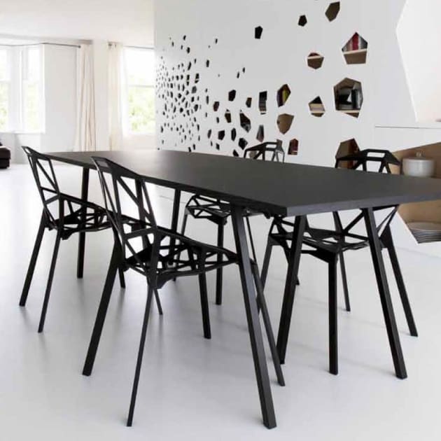 Diseñada en el año 2003 por el diseñador alemán Konstantin Grcic. Puede ser apilada hasta a 8 sillas, satisfaciendo así cualquier exigencia del hogar y de los espacios comunitarios.