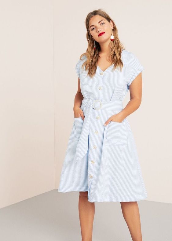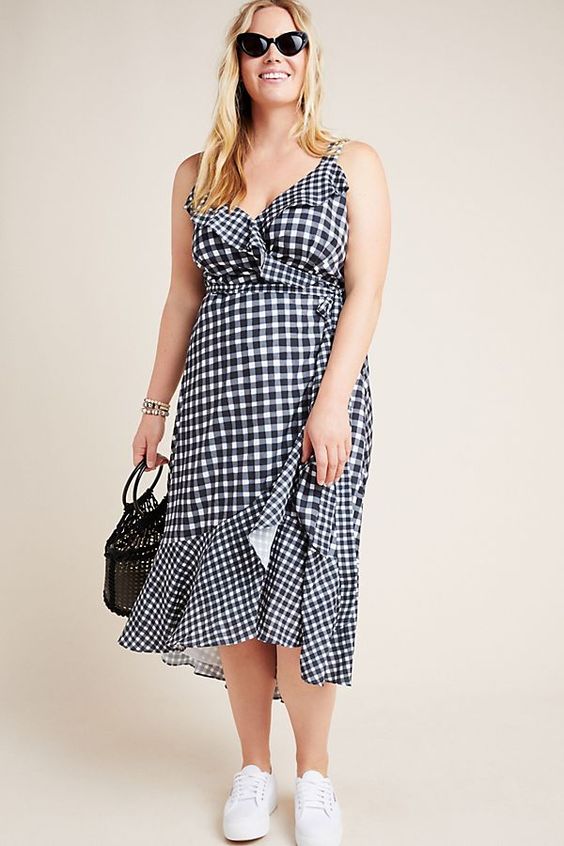 Las faldas y vestidos en formas de A serán tus grandes aliados para destacar tu cintura y estilizar la zona del abdomen bajo, muslos y caderas. Además siempre será bienvenido sumar un cinturón al look o busca prendas que lo traigan incorporado, como este veraniego vestido a cuadros.
