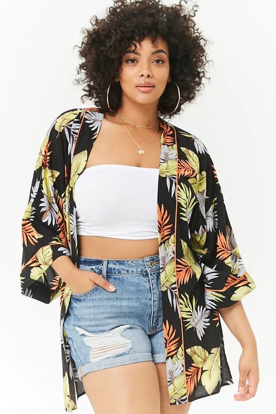 Los kimonos o tapados son excelentes para sumar color a looks más bien neutros, como un dúo de short denim + top básico. Además abrigan lo justo y necesario para las noches veraniegas.