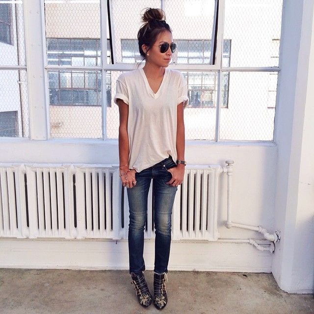 No obstante, no deja nada al azar ni que el aire descuidado se apodere del todo. A estos atuendos siempre los complementa con una cartera de Valentino, Chloé, Gucci o zapatos de diseñador. Son esos “pequeños” twist los que la mantienen actualizada y a la moda, sin perder su línea que es bastante básica. Es por esta razón que las chicas se identifican con ella…