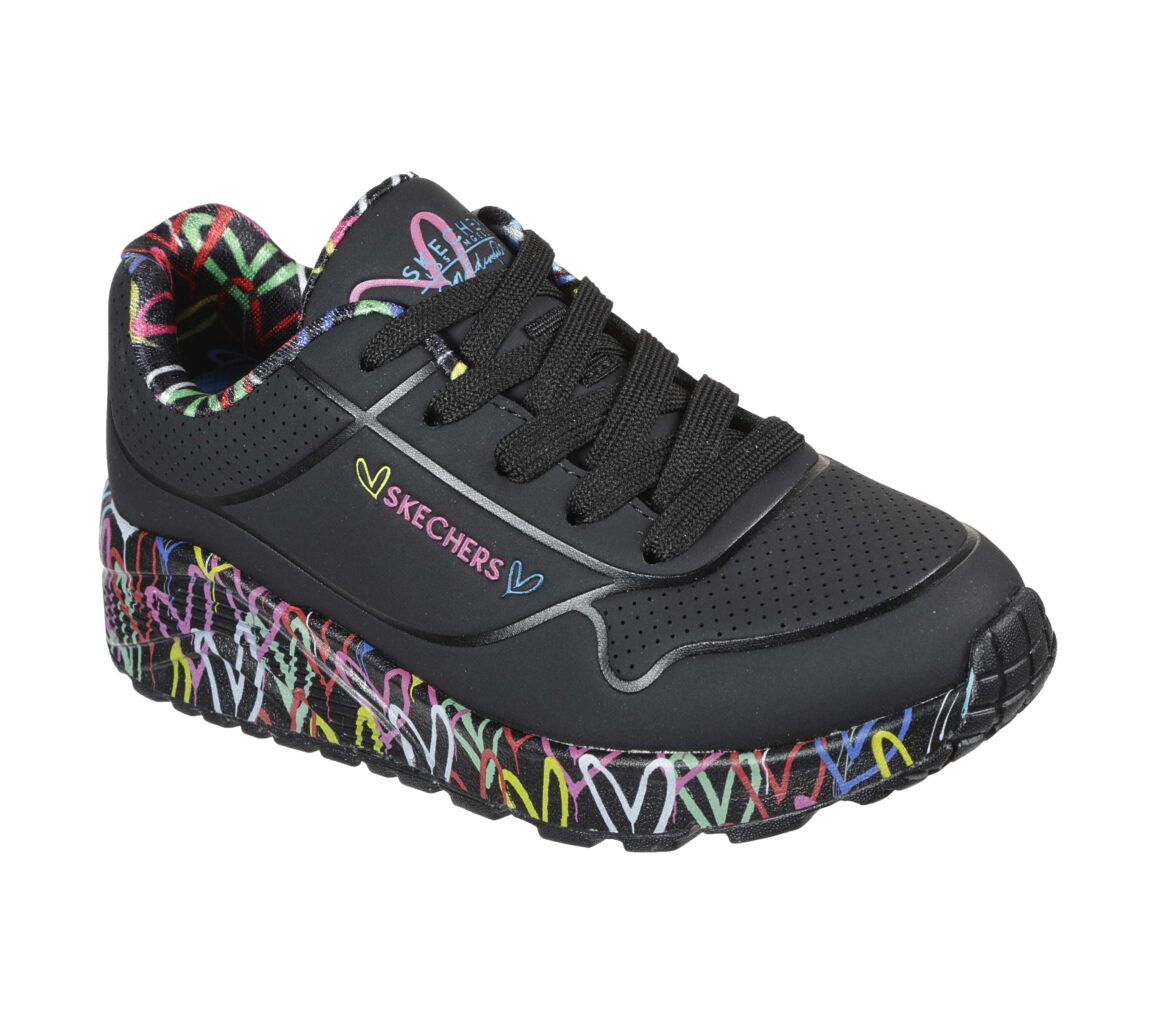La zapatilla creada en conjunto con el artista inglés corresponde al clásico modelo UNO de Skechers y es la segunda colaboración que hace junto a Skechers con este modelo, esta vez pensada solamente para niñas, lo que la convierte en un modelo ideal para aquellas que quiera sumar una cuota de color en sus pies. Además contará con unidades limitadas en color blanco y negro, que se pondrán a la venta de forma exclusiva a través de www.skechers.cl con tallas que van desde la 26 a la 36, y diseños que destacan una variedad de patrones de corazones de distintos colores que se transforman en una apuesta interesante que va más allá de las tendencias, celebrando la creatividad y explosión de color.