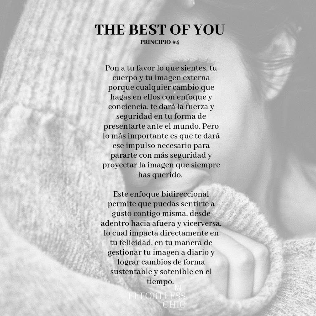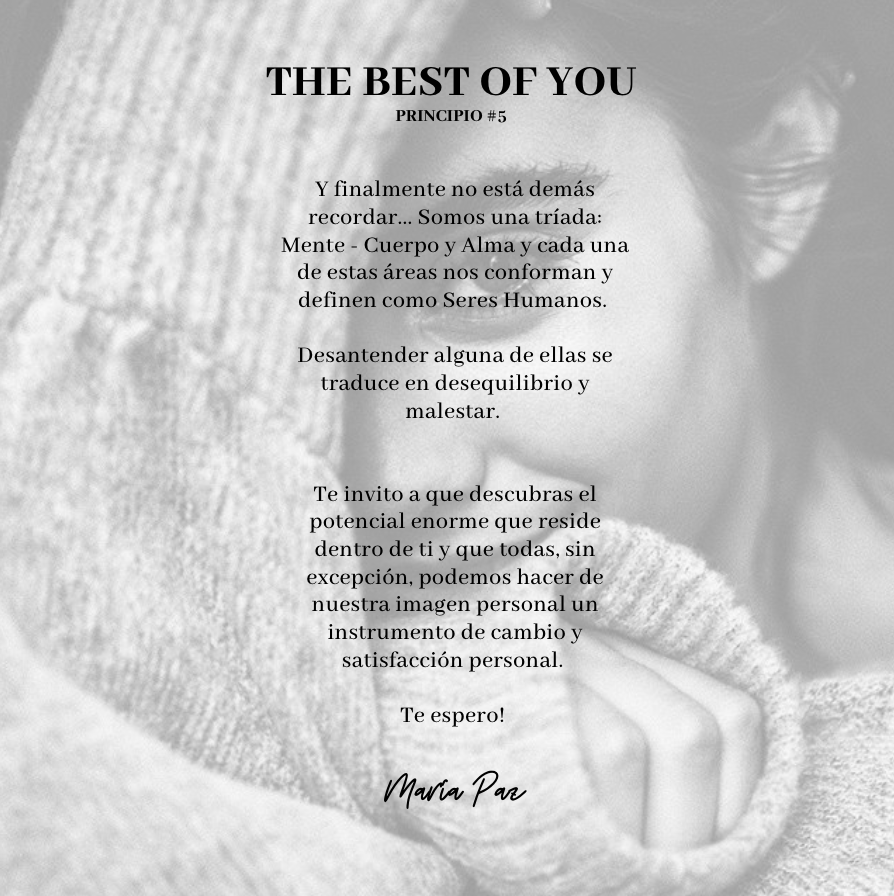 The Best of You ya en su 13 Edición en Santiago y por primera vez en Viña del Mar, es un taller grupal de Imagen Personal de una sola sesión (9:00 a 12:00 hrs.) donde a diferencia de algunos programas de Asesoría de Imagen que podrás encontrar en el mercado, este es un programa que se abarca desde la perspectiva de la realización personal y crecimiento personal.