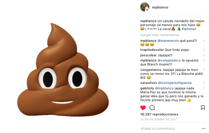 Y finalmente, me encanta la posibilidad de “animar” los emoticones…. A los niños les encanta y pueden ver en mi Instagram @mpblanco lo novedoso que son! Más de 10.200 reproducciones tuvo este divertido video donde la caca, personaje favorito de muchos, nos daba un divertido saludo navideño con mi voz.