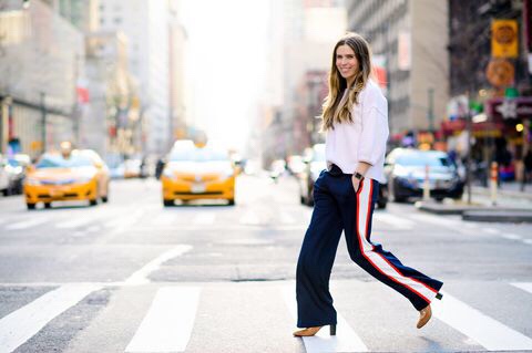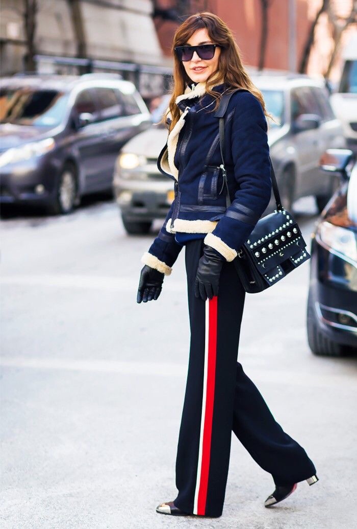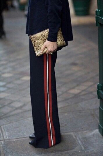 Los track pants ganan así en sofisticación y atractivo, deshaciéndose casi por completo de la vertiente deportiva más informal. Olivia Palermo lo ha demostrado llevándolos en su versión navy de tiro alto, junto a zapatos en punta y pieles.