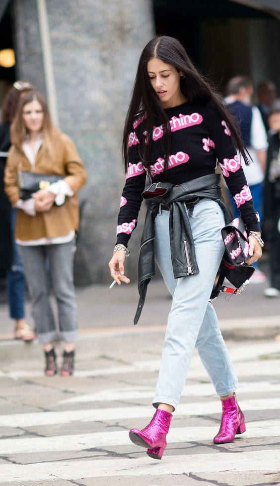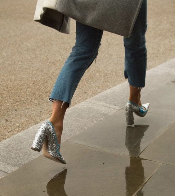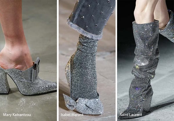 ¡Pasos que sacan chispas! Los botines con glitter o brillos llegan como un accesorio para atraer miradas. Las botas de Chanel se transformaron en un hit fashionista entre las influencers (de taco bajo y emulando a las botas de montar) son capaces de encandilar la mirada. J Crew, Oscar de la Renta, Saint Laurent (las botas que Kendall Jenner usó para ver un partido de básquetbol) y Marco de Vincenzo son algunas de las casas de moda que se han rendido a las texturas resplandecientes en sus zapatos. La clave para llevar bien un look así es combinarlo con prendas neutras y sencillas.