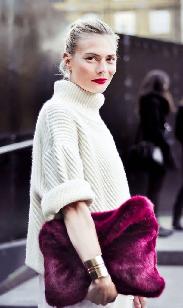 Y por último, para cuando ya los días sean más fríos el faux fur se tomará las tenidas y no solo con abrigos, también llega a los accesorios como carteras, bufandas e incluso en las mangas de sweaters y polerones. Lo vas a ver en todas partes, ¡todo tendrá algún detalle peludo! La clave es elegir una textura que no se vea dura, ni tan plástica. No hay que abusar de este formato porque genera volumen.