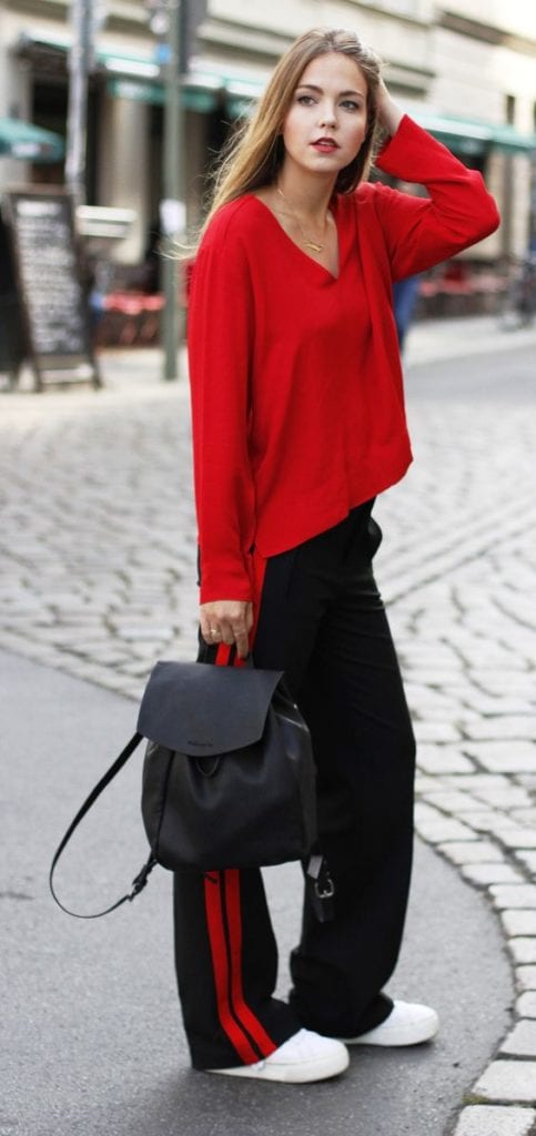 Otra tendencia que veremos mucho durante el otoño/invierno es la de leisure suits, es decir estos trajes de buzo entre setenteros y ochenteros que conforman una nueva versión del athleisure style. La prenda más importante de este estilo serán los pantalines, con una raya por el costado, de caida ancha y ojalá abierto hacia al tobillo. Pero no solo llegan en tela de buzo, la moda también los ofrece en versión de tela y hasta en denim! La clave del estilo es combinarlo con prendas que aporten un toque chic, como tacones y blusas.