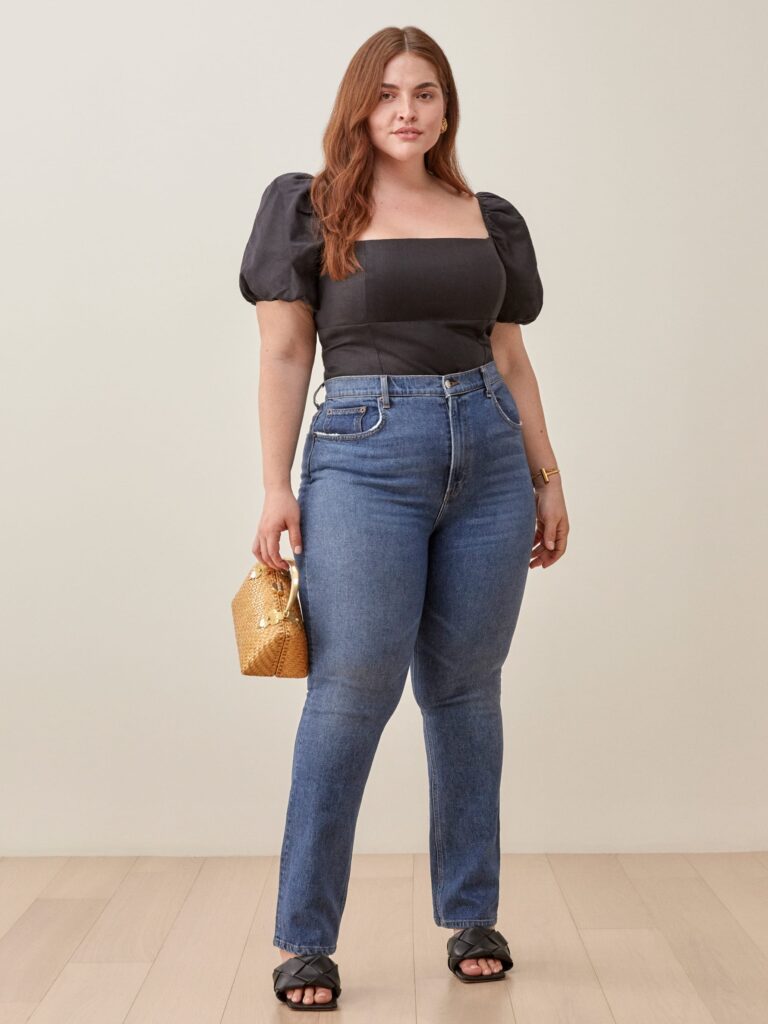 Sin duda de los tipos de jeans más favorecedor para neutralizar muslos y caderas, y estilizar toda la silueta.