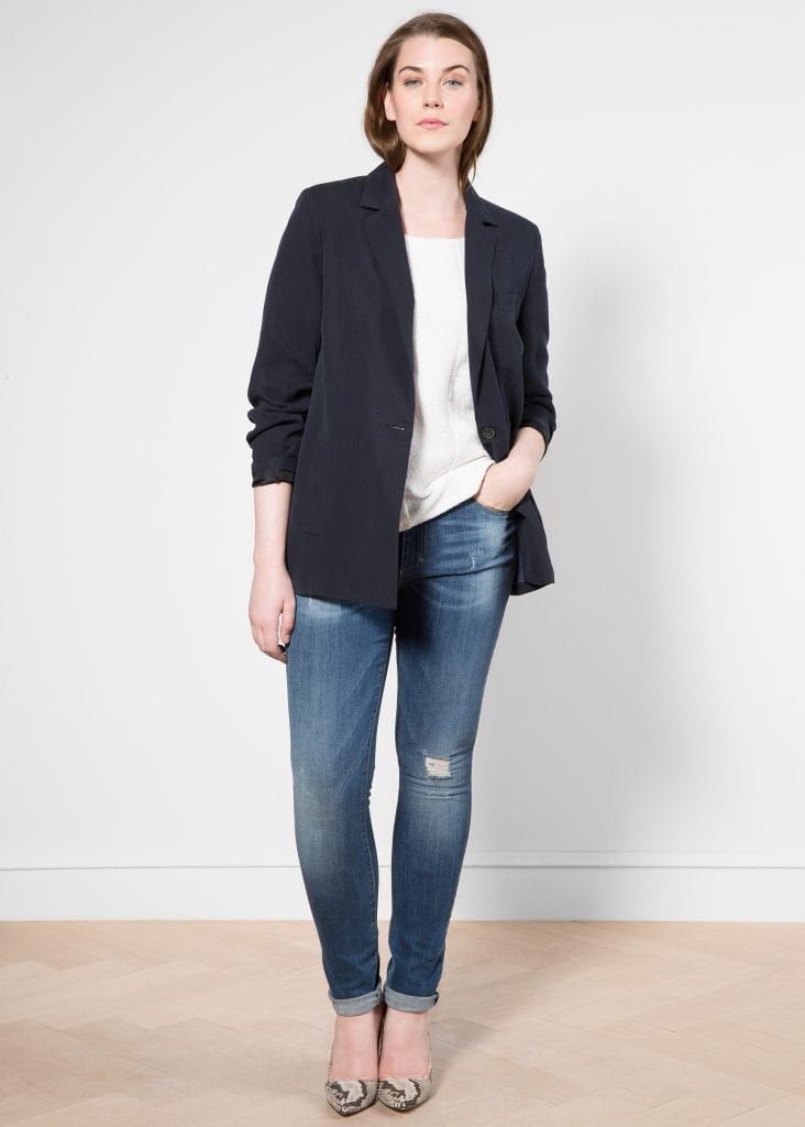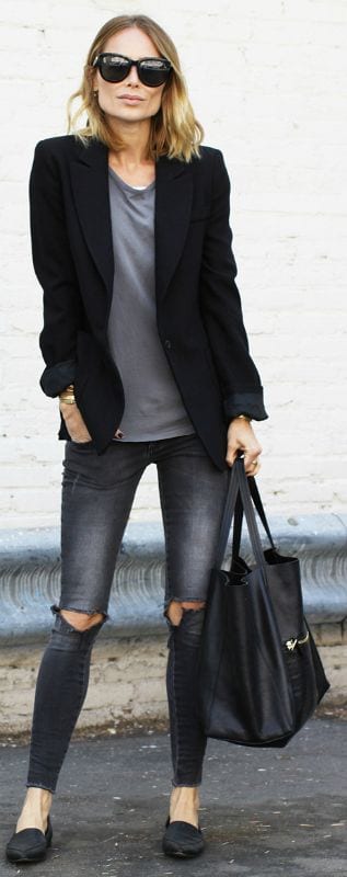 Una prenda que no te puede faltar si tienes algunos kilitos de más es el blazer negro. Si te lo pones con una t-shirt y jeans automáticamente te verás más delgada. Tu cintura y tu cadera se verán más pequeñas. Haz la prueba!